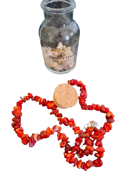 Feito com pedra natural, é um acessório poderoso para sua autoconfiança e sensualidade natural, pois traz vitalidade e poder pessoal. Possui extensor ajustável e garrafa purificadora, que contém uma mistura de pedrinhas de dolomita e sal grosso, unindo estabilidade energética e purificação. Basta colocá-lo nela para renovar sua força espiritual.