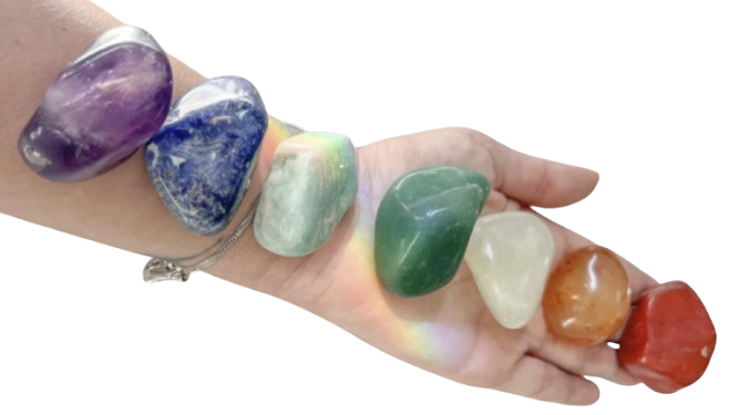 Mini cristais que atuam diretamente em cada um dos sete centros energéticos do corpo, promovendo alinhamento, desbloqueio e bem-estar vibracional.