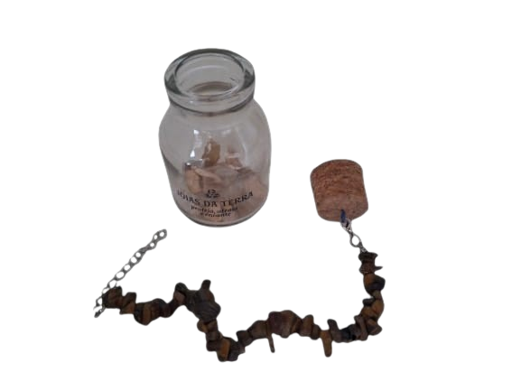 Possui extensor ajustável e garrafa purificadora, que contém uma mistura de pedrinhas de dolomita e sal grosso, unindo estabilidade energética e purificação. Basta colocá-la nela para renovar sua força espiritual.