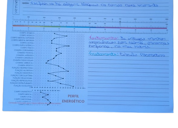 Atendimento online onde a terapeuta faz uma leitura consciente do campo energético para compreender onde o desequilíbrio se origina, como ele se organiza e o que a alma está tentando comunicar, através dos gráficos radiônicos. Ajuda a identificar padrões repetitivos; compreender a raiz emocional, mental ou espiritual de um bloqueio; reorganizar o campo energético; restaurar coerência entre corpo, emoção, mente e essência, além de ampliar a consciência da pessoa sobre si mesma. Em outras palavras, trata a desconexão entre o que a pessoa vive e o que a alma sustenta.